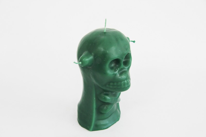 Candela a forma di teschio con tre stoppini verdi. Progettato per essere utilizzato nel caso in cui desideri interrompere le situazioni, soprattutto per eliminare tutte le cose brutte che una persona, una casa o un’azienda ti hanno fatto. Si consiglia di usarli tre a tre per ottenere un risultato migliore.