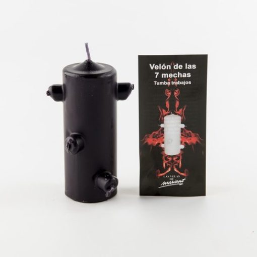 Candela rituale a 7 stoppini, simbolo di luce che penetra anche nelle ombre più profonde. Nella versione nera è indicata per riti di blocco, allontanamento, rottura di legami tossici o situazioni negative. Utile anche per protezione forte, neutralizzazione del male e ritorno al mittente. Le sue misure sono circa 5,5 cm x 16 cm di altezza.