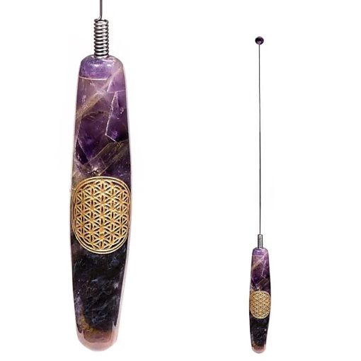 Oltre alle tradizionali bacchette da rabdomante e ai pendoli, è possibile utilizzare i bio-tensori. Questi strumenti, noti per la loro precisione ed efficacia, sono fondamentalmente composti da un’asta in acciaio. Ciò che distingue un bio-tensore dall’altro è il materiale del manico, che può essere in quarzo rosa, cristallo di rocca, ametista, pietra ollare o legno, e può essere decorato con simboli come il Fiore della Vita.