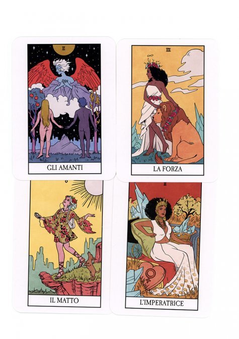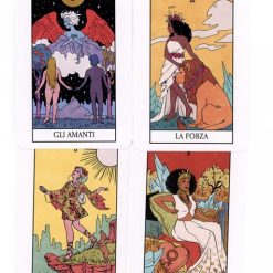 Le 78 carte di questo mazzo di Tarocchi (oltre alle due carte aggiuntive) sono ricche di significato: archetipi come Il Mago, L’Imperatrice e Il Carro riflettono la nostra esperienza quotidiana e sono uno specchio del modo in cui interagiamo con il mondo esterno.