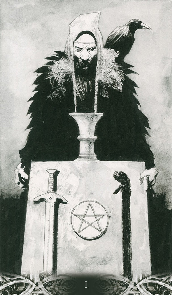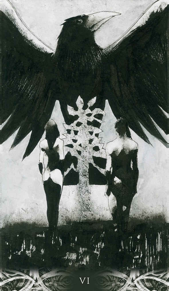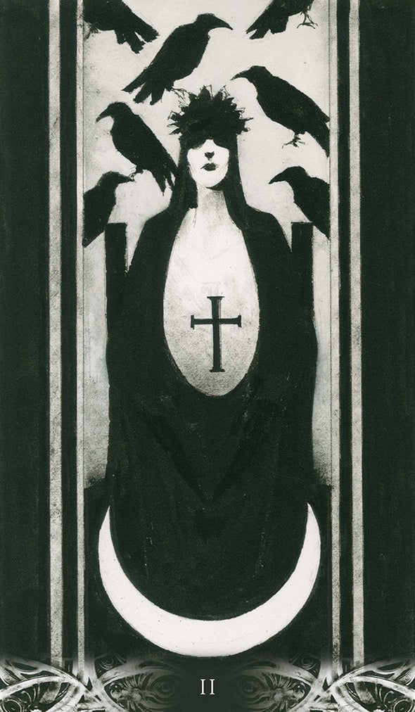 “Infine arriva il corvo”. Latore di presagi, messaggero, guardiano ed animale necrofago: il corvo non ha padroni. Questo mazzo gotico dalle carte nere infonde nei Tarocchi, come non mai, paura ed inquietudine.