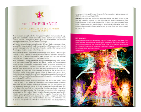 Kit contenente 78 carte, 75×140 mm, corredate da un libro che spiega i segreti del mazzo attraverso parole e citazioni di Davide De Angelis e dello stesso Bowie.