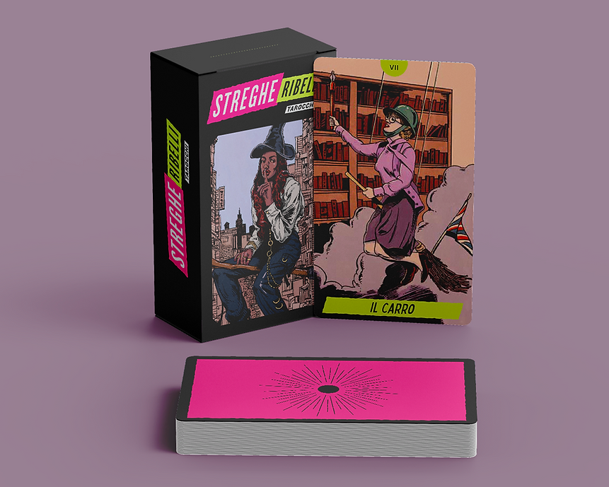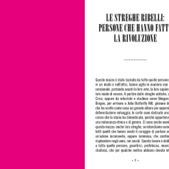 • Illustrazioni originali che raffigurano le “streghe ribelli” con uno stile vivido e audace.