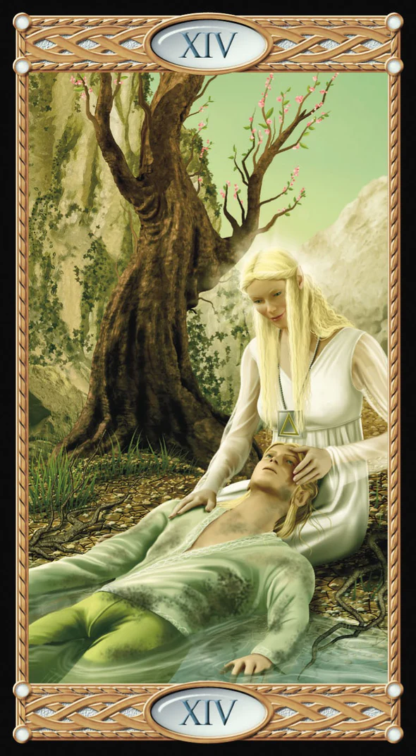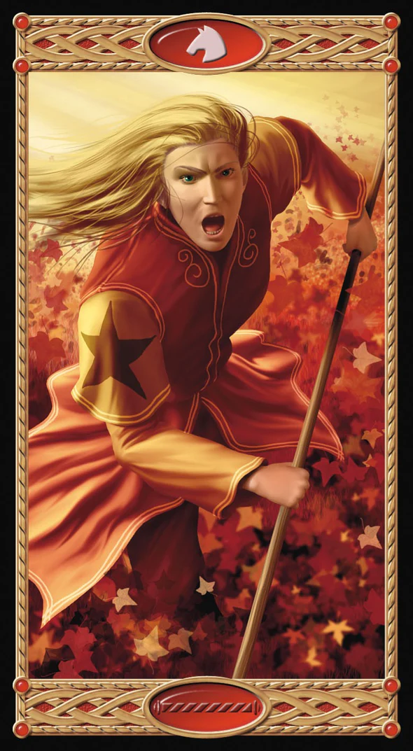 Questo mazzo contiene 22 Arcani maggiori che illustrano l’avventura spirituale del Principe Alberich. Ogni seme degli Arcani minori dipinge una vicenda fondamentale per la cultura e i valori elfici. Il pieghevole incluso racconta le storie e i significati di ciascuna carta.