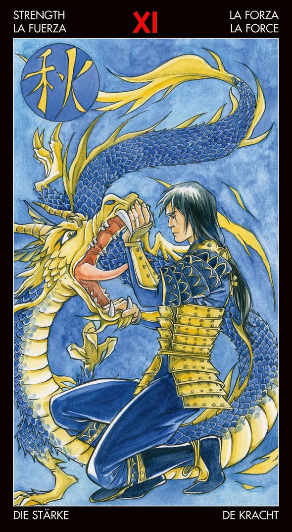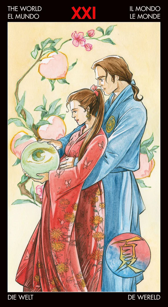 Questi Tarocchi mostrano un universo di collegamenti e di riferimenti, costruito attorno all’epica fantastica dell’Oriente.