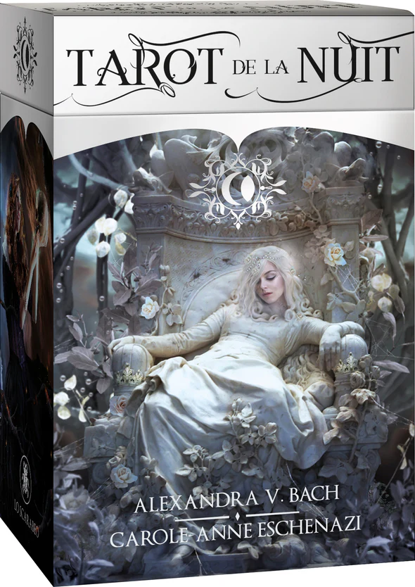 Un mazzo dalla bellezza incredibile, nato dalla penna di Carole-Anne Eschenazi (CaTTarot) e dalla nota illustratrice francese Alexandra V. Bach. Ogni Arcano è un capolavoro che ha come tema “la nuit” (la notte).