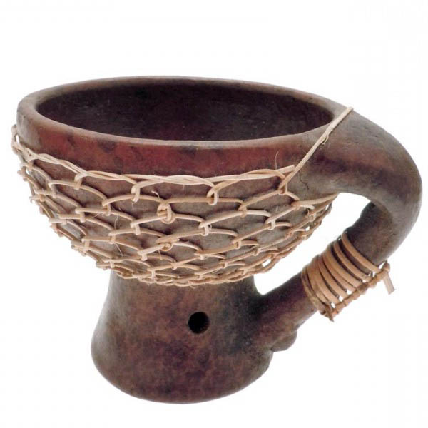 Bruciatore con rattan in terracotta con manico per incensi in grani e resine naturali.