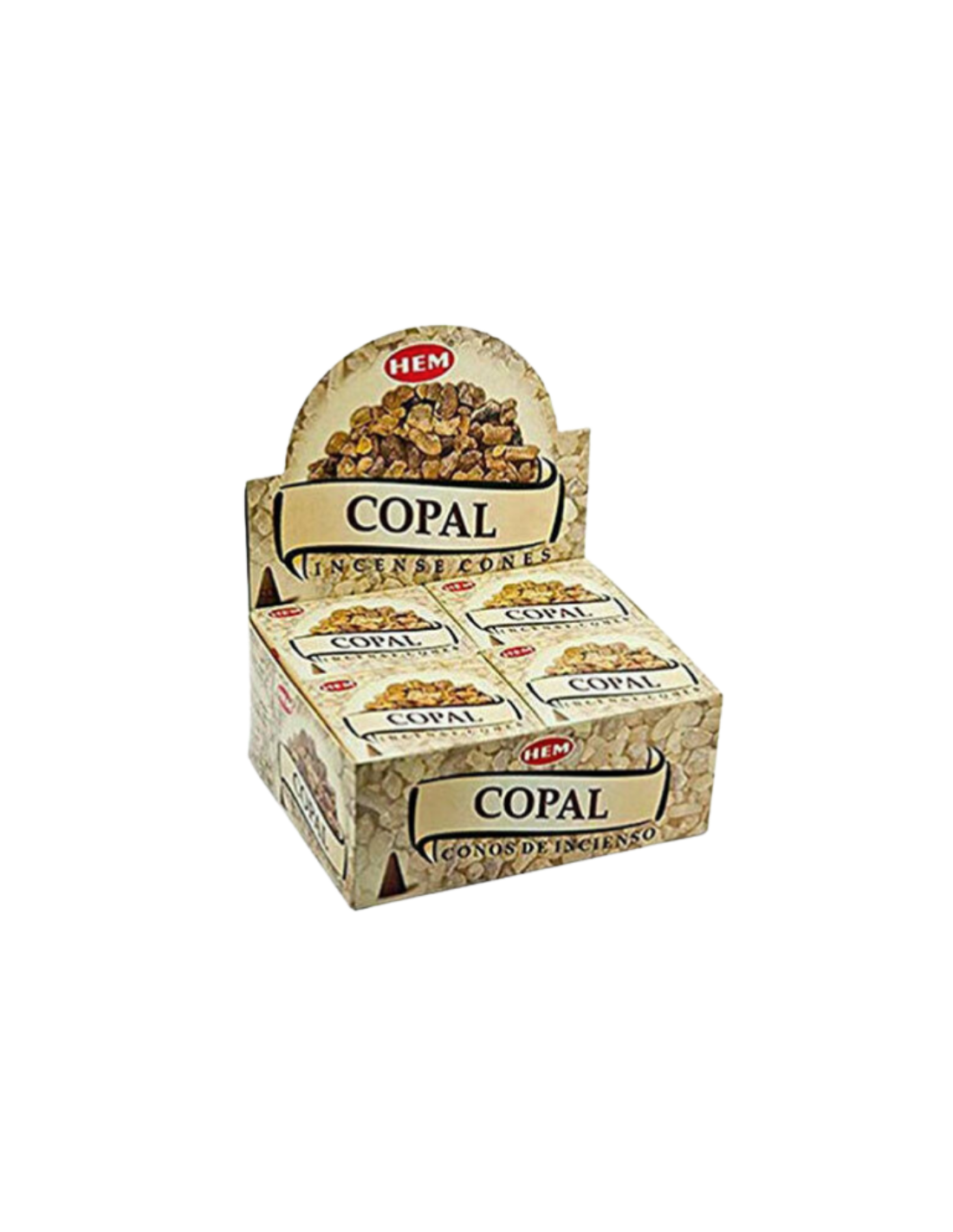 Coni di incenso HEM – Copale (Incensi a cono). I coni d’incenso Hem sono tradizionalmente fatti a mano e realizzati con una miscela di oli naturali, erbe e resine. La scatola contiene 10 coni e un supporto di metallo su cui possono essere bruciati. Sono perfetti per l’aromaterapia ed eliminano i cattivi odori
