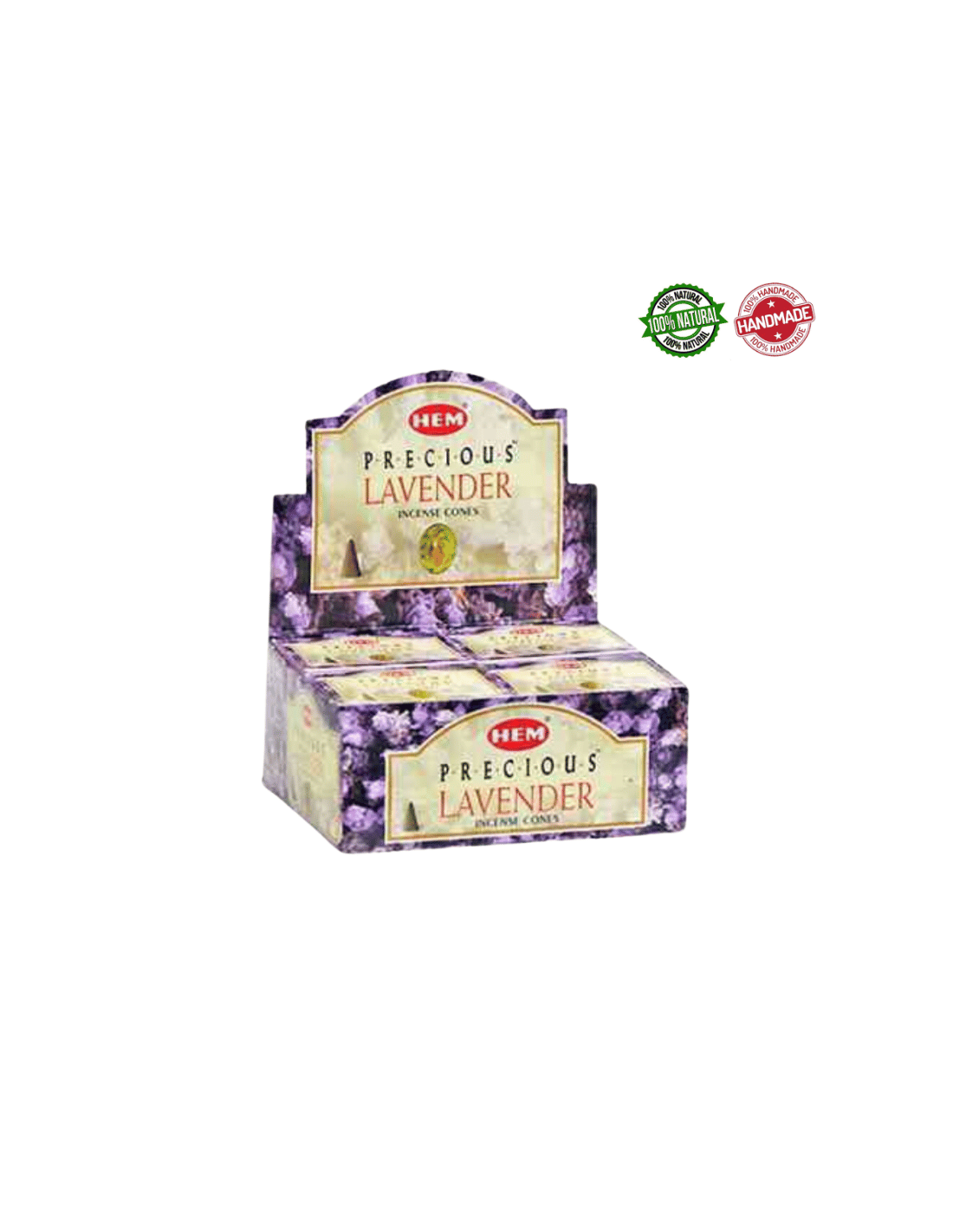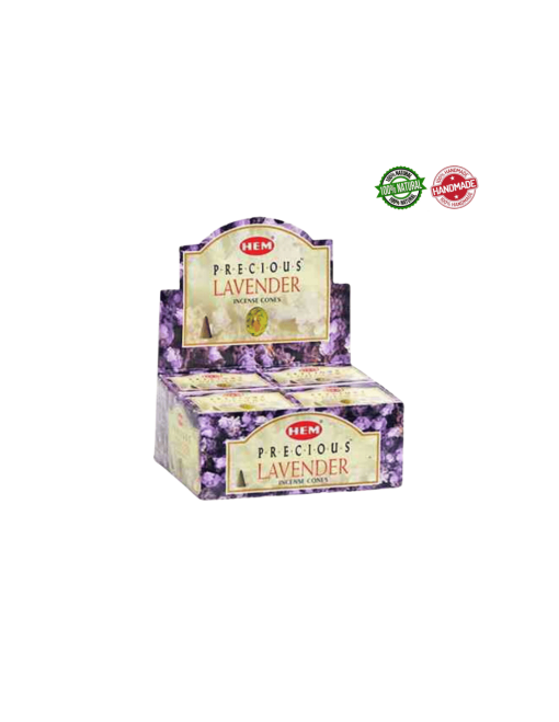 Coni di incenso HEM – Lavanda (Incensi a cono). I coni d’incenso Hem sono tradizionalmente fatti a mano e realizzati con una miscela di oli naturali, erbe e resine. La scatola contiene 10 coni e un supporto di metallo su cui possono essere bruciati.