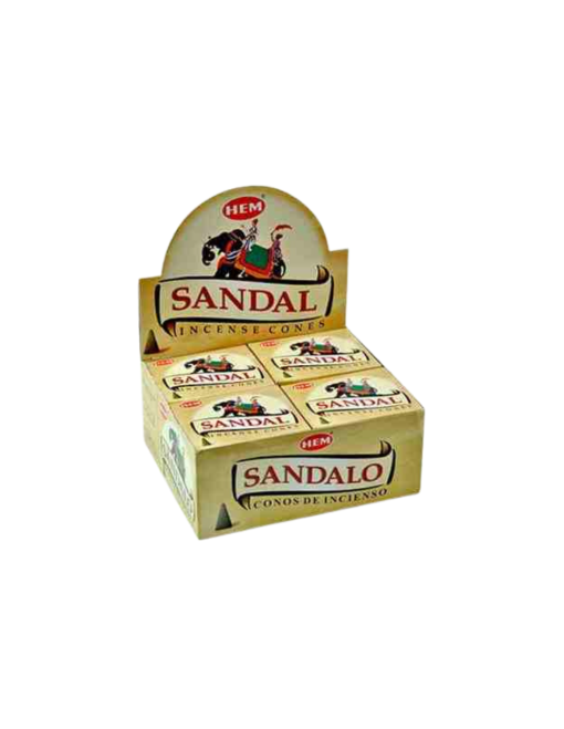 Coni di incenso HEM – Sandalo (Incensi a cono). I coni d’incenso Hem sono tradizionalmente fatti a mano e realizzati con una miscela di oli naturali, erbe e resine. La scatola contiene 10 coni e un supporto di metallo su cui possono essere bruciati.