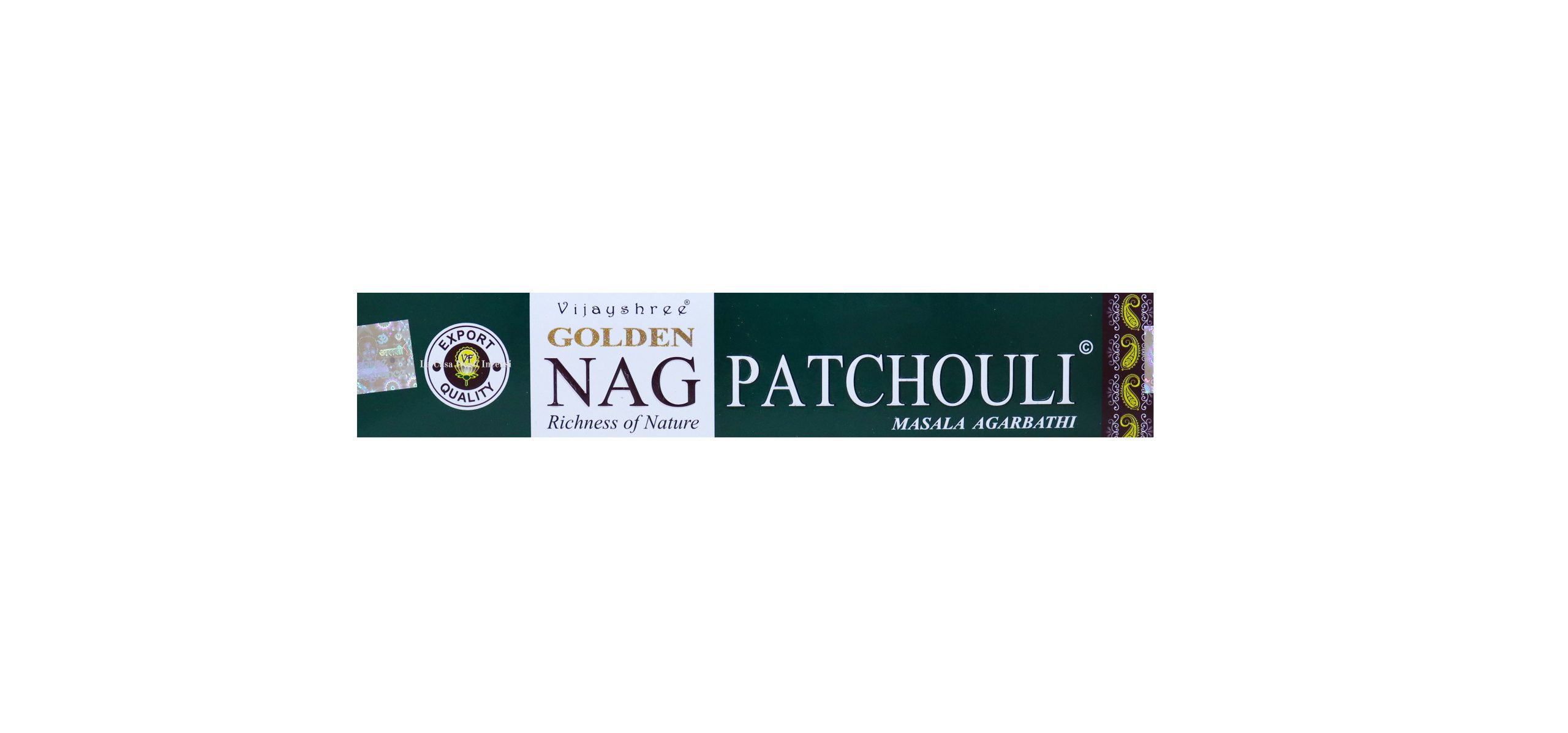 Questi bastoncini d’incenso Vijayshree Golden Nag Patchouli sono preparati con cura con polvere di legno naturale ed estratti di oli essenziali di erbe.
