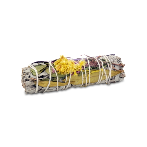 TOTAL RELAX è uno smudge a base di Salvia Bianca, petali di clavellina, lillà e foglie di caspian.