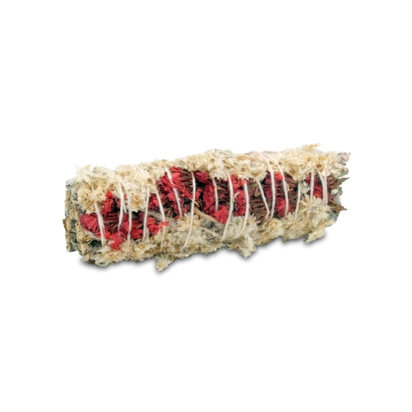 PASSIONE & SENTIMENTO è uno smudge a base di Salvia Bianca, petali rossi di Limonio e fiori di Panicum.