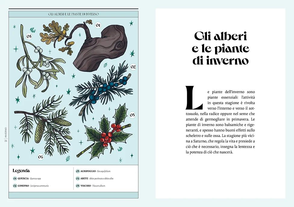 • Lungo il corso di un anno solare, un almanacco di informazioni sugli alberi e le piante della foresta attraverso le stagioni