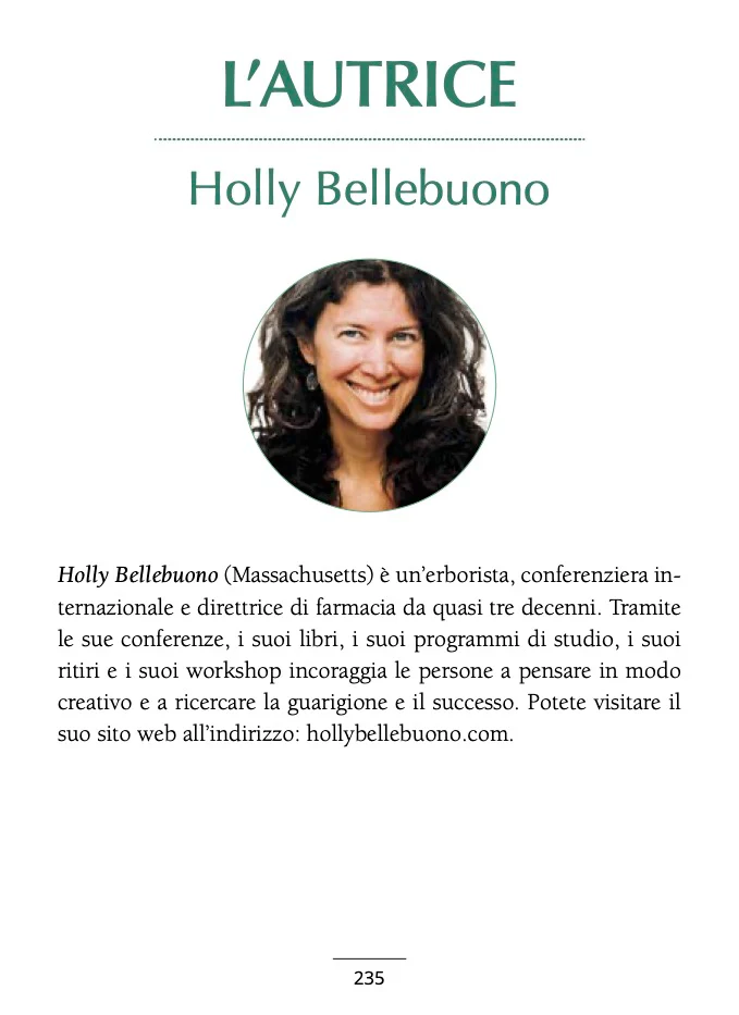 Il nuovo libro dell’erborista Holly Bellebuono: contiene ricette, esercizi utili, consigli pratici di giardinaggio, storie e suggerimenti per la preparazione di rimedi naturali. Include anche elenchi di erbe adatte ai principianti, erbe insolite ma degne di nota, erbe selvatiche da lasciar crescere ed altre da evitare del tutto. Questo comodo volume presenta tutte le meraviglie dell’uso delle piante, dimostrandosi una risorsa ideale per giardinieri e aspiranti erboristi.