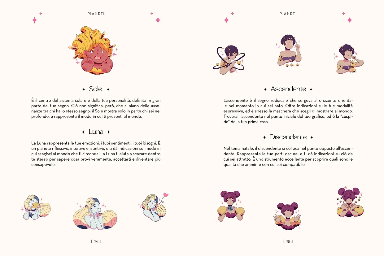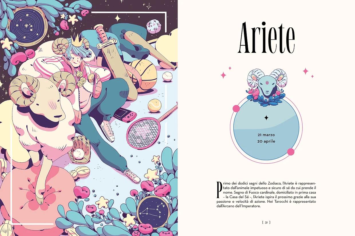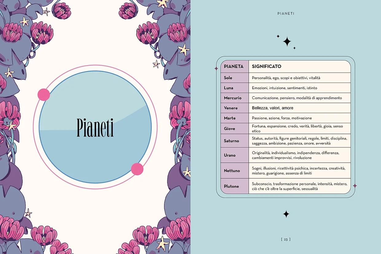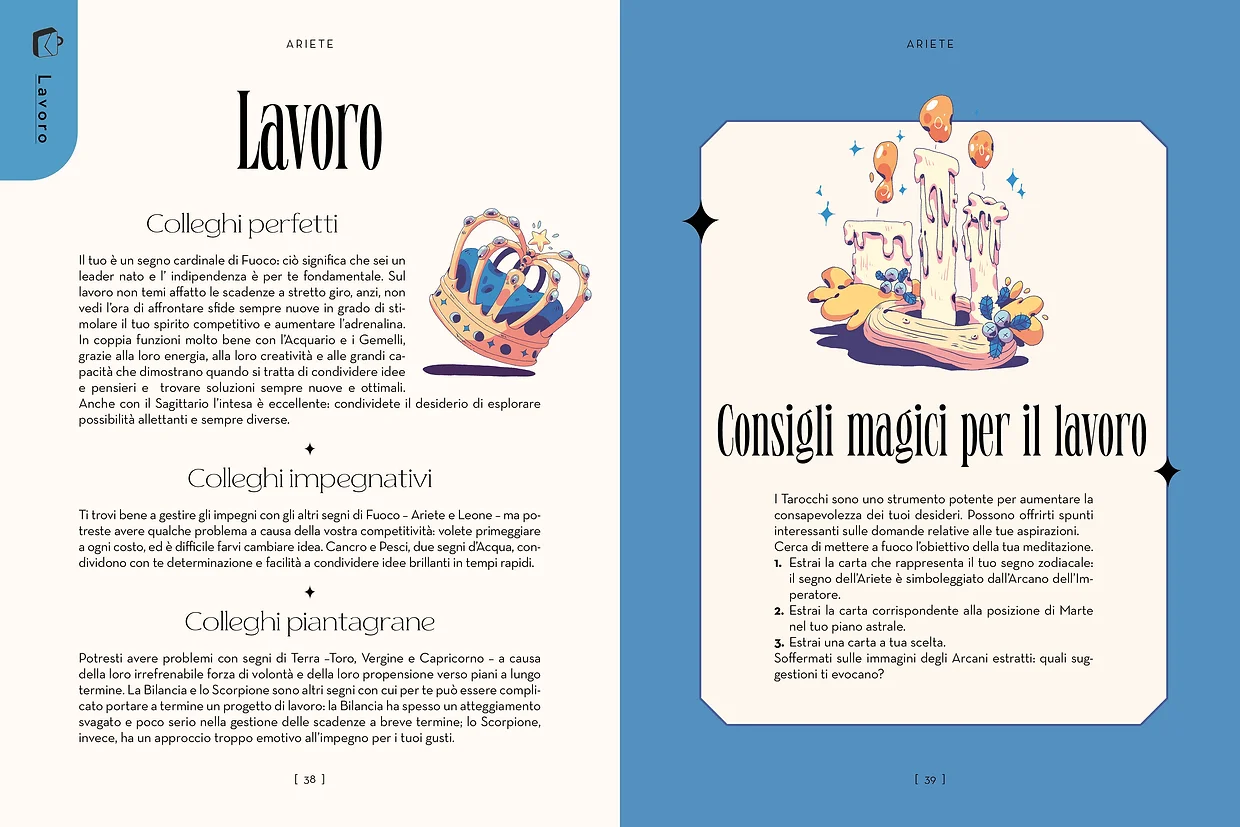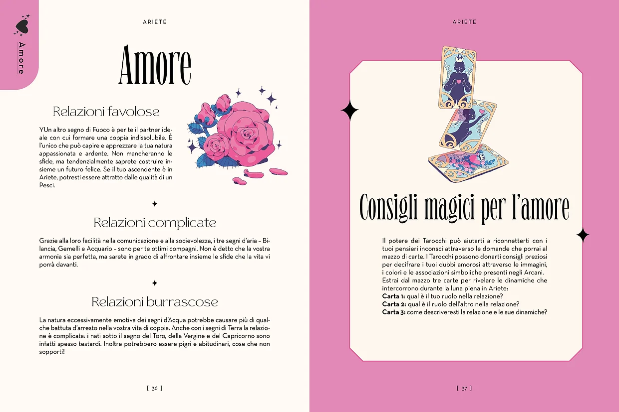 • Una sezione dedicata a chakra e cristalli, erbe e piante, incantesimi e letture divinatorie per ciascun segno zodiacale.
