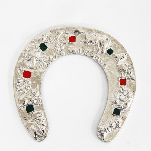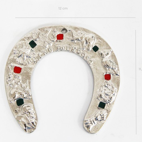 Il Ferro di Cavallo in Zama (indica una famiglia di leghe di zinco, i principali elementi delle quali sono l’alluminio, il magnesio e il rame) è un potente talismano di protezione e buona sorte, realizzato con leghe metalliche resistenti e decorato con colori simbolici per amplificare le sue energie benefiche.