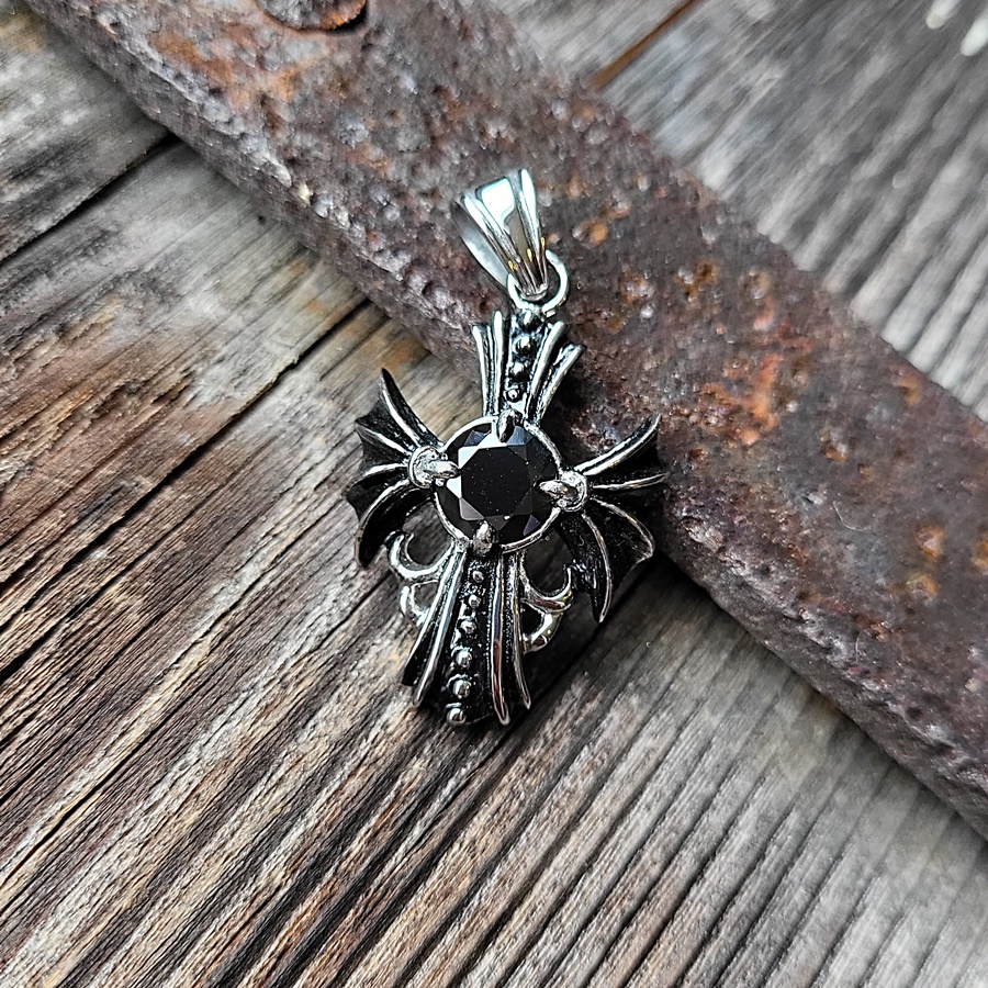 Ciondolo in Acciaio Inossidabile – Croce con Pietra di Vetro 3D