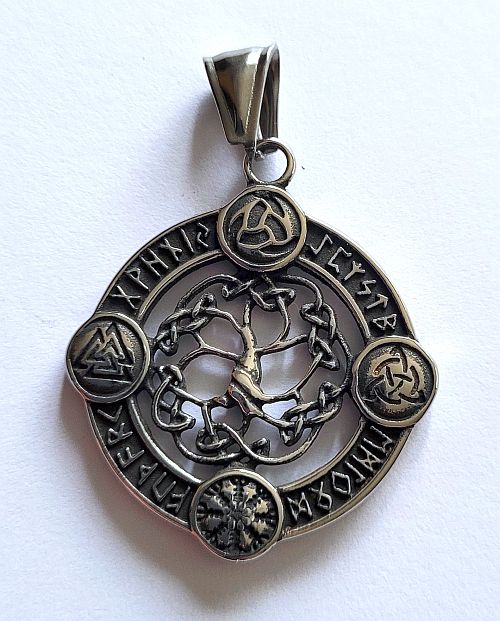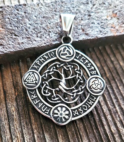 Ciondolo in acciaio inossidabile albero della vita in un cerchio runico, indossabile su entrambi i lati, realizzato in acciaio inossidabile massiccio.