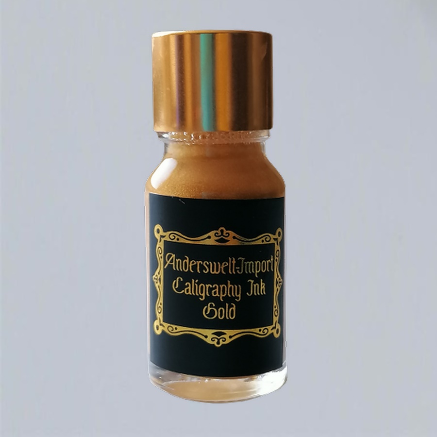 Inchiostro calligrafico oro, a base puramente vegetale per calligrafia, consacrato al sole, per scrivere con l’energia del sole