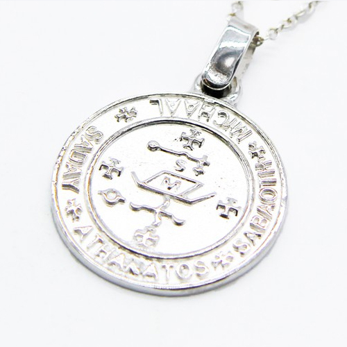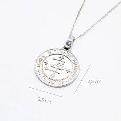 Questa medaglia è realizzata in argento sterling 925, una lega composta dal 92,5% di argento puro, con il restante 7,5% di altri metalli per garantire resistenza, durata e brillantezza. L’argento è storicamente associato alla protezione e alla spiritualità, rendendolo il materiale perfetto per un talismano di questa potenza.
