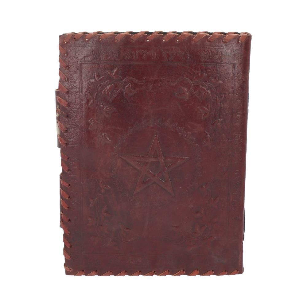 Rilegato in pelle marrone il libro è dotato di due fermagli in metallo che ne impediscono l’apertura inaspettata. La copertina in rilievo con un pentagramma al centro, circondato da un cerchio di triskelion celtico. L’edera torna agli angoli e il tutto circondato da rune mistiche. All’interno, la carta di alta qualità ti dà la libertà di registrare la tua magia i tuoi sogni senza ostacoli.