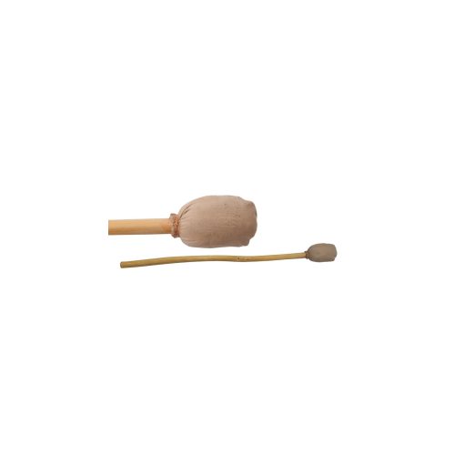 Battente per tamburo sciamano in legno naturale ricoperto in pelle, colorazione chiara.