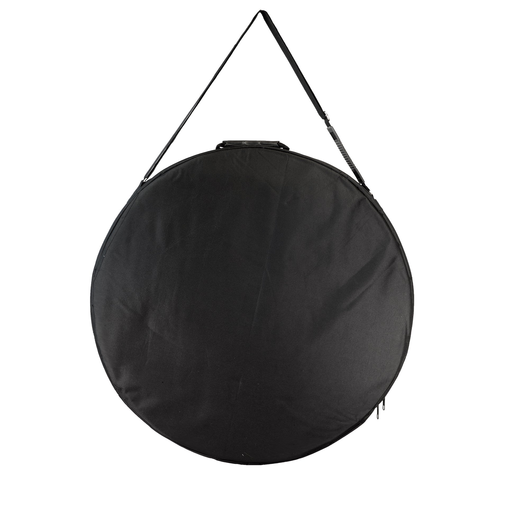 Tamburo sciamanico siberiano con pelle di capra e motivo serigrafato “Maya”, Ø58cm, alto 7cm, compreso sacchetto e decorazione di piume